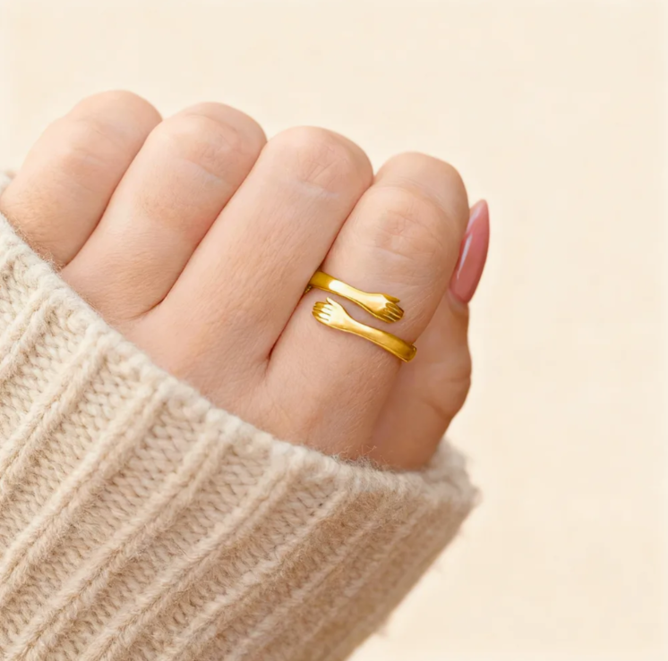 Este anillo representa un abrazo que nunca se suelta, un gesto silencioso que dice: “estoy contigo, siempre”.